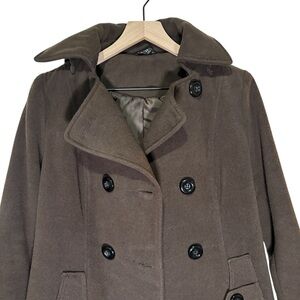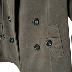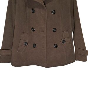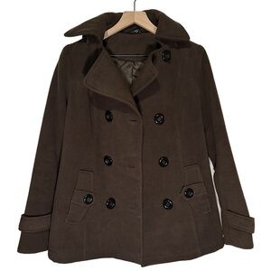 Hooded Pea Coat Brown Women's Size Small 4/6 Office Casual Fall Winter