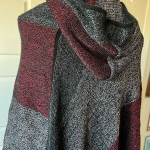 Hooded Poncho Cape with Fringe Burgundy Gray Black Cozy Warm Fall Winter OS