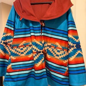 Hooded Poncho Jacket Aztec Pattern