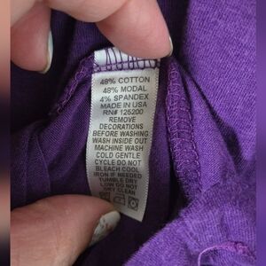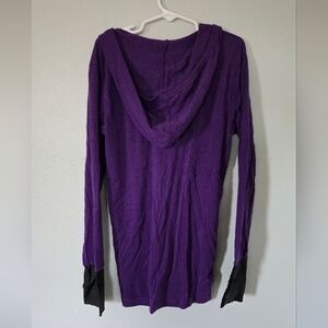 Hooded purple Girls Shirt with leather on cuffs. Shows some wear.