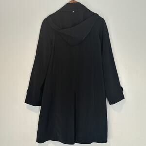 Hooded Rain Trench Coat Small Black Lined Wind Water Resistant Retro Preppy EUC