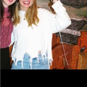 Edged sweatshirt with actual holes but it’s on purpose and it’s cute. Still keeps you warm and in great condition.