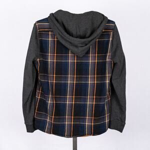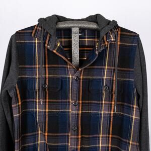 Pre-Owned: Hooded Shacket / Lightweight Jacket; Plaid; Men's Size MEDIUM; Fabric: Jacket Body 100% Cotton; Contrast: 55% Cotton, 45% Polyester. This item is in good, pre-owned condition with no rips, holes, or stains. Please check measurements before purchasing. Measurements: