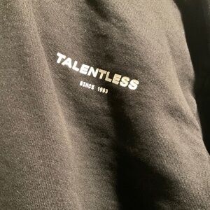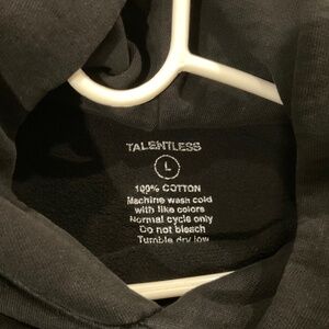 Black hooded sweatshirt. Logo on front and back.