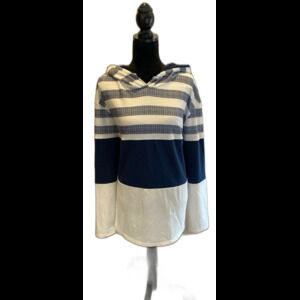 Hooded Sweatshirt Hoodie Womans Color Block Navy White Stripes Plus Size 2XL