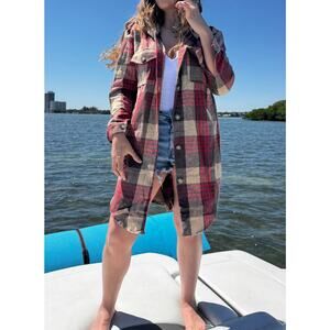 Stay cozy and stylish with this hooded, longline plaid flannel fleece shacket! It's the perfect combination of a shirt and a jacket, offering warmth and comfort on chilly days.