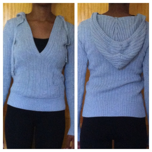 Grey; Cable-knit; Hooded w/ strings to tighten; V-neck; Front pouch; Fitted sleeve bottoms **black tank not included**