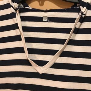 Hooded Gap Women’s V-Neck Striped Shirt • large