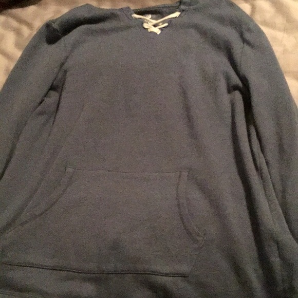 It’s a blue hoodie with white laces