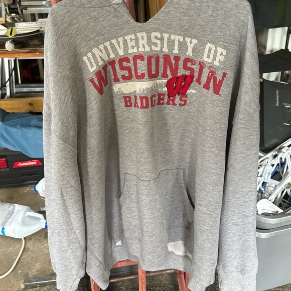 University of Wisconsin Badgers hoodie. Made into a v neck. Missing string and one eyelet.