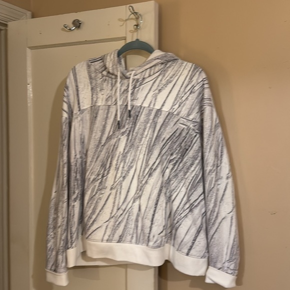 Grey & white hoodie with holes in the banded wrist for your thumbs