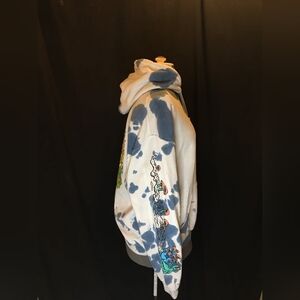 Stylish tie-dye hoodie with a unique mushroom and slug graphic design. Features a comfortable fit and front pocket. size M