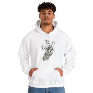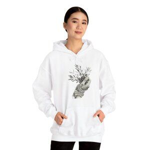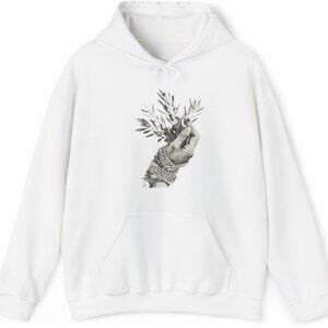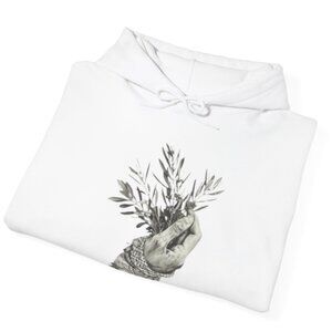 White, Black, Men, Women Hoodie Loose Casual Clothing Fashion Long Sleeve Hooded Pullover Personality Street wear Sweatshirts with a Hand holding Zaitoon plant