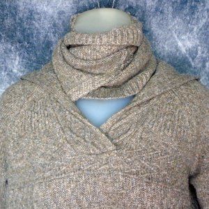 I have enough fashion and styling hacks to start my own website but I am sharing just one here. First of all this is a wonderfully soft knit, there were no fabric ID labels so I don't know the exact content, definitely synthetic, probably some kind of acrylic. Super soft, not a lot of weight to it. It was a regular hoodie at a usual length but it is now cropped to 19 inches. If I were to make it a little better I think I would crop it even shorter and pull out more threads at the raw hem but that part's up to you. The bottom part that was cut off now has many uses, as you can see in the above stylings. Can work as a turtleneck, it can pull the hoodie closer to the neck to look like 50s hoodies, use it as an infinity scarf, you can make a cowl, make it into a collar with keyhole effect as shown in the first photo (would take some playing to get it right). It would also work as a warm soft head wrap. What else can you think of? I keep many of these for myself but this one I have up for grabs because I have too many!