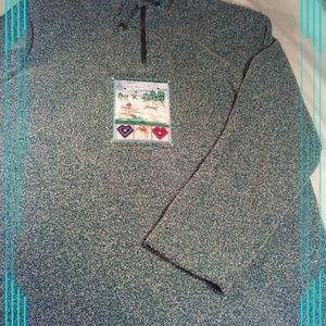 Green marled quarter zip pullover with tied at neck go stay warm.