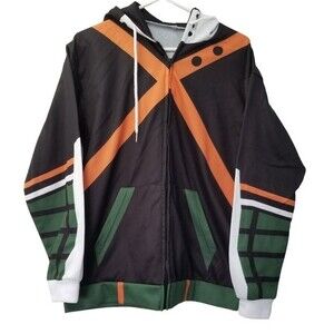 Hoodie Men's Size Large Black Orange Full Zipper Pockets