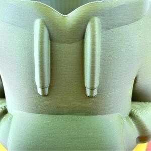 The holder is 3D printed using PLA plastic filament. 3D printing is done by printing layer upon layer of filament to build up and create the print.