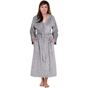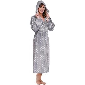 Hoodie Robe Plush Hooded Robe Spa Bathrobe Hoody Robe Long Robe Gray Polka Dot