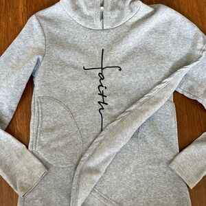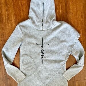 Hoodie Sweatshirt Faith Print Gray Christian Athletic Wear Cozywear Athleisure S