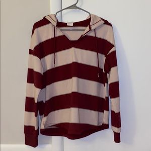 Dusty rose & burgundy striped hoodie with drawstring hood.