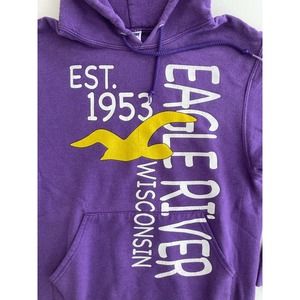 Hoodie Women's MEDIUM Graphic Eagle River, WI Kangaroo Pocket Heavyweight Purple