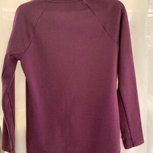 Hoodie/jacket maroon asymmetrical longer back sleeves with thumb hole no name or size label looks medium/ large approximate measurements are Shoulder to shoulder 16 under arm to under arm 17 1/2 sleeves outside seam 26 length bottom of the color to the bottom 28 no hood