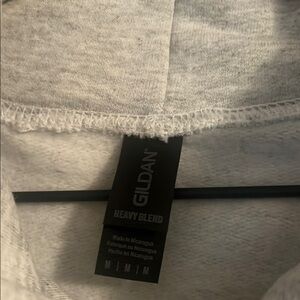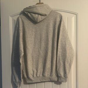 Light gray Gildan hoodie. Soft and comfortable. Ideal for casual wear.