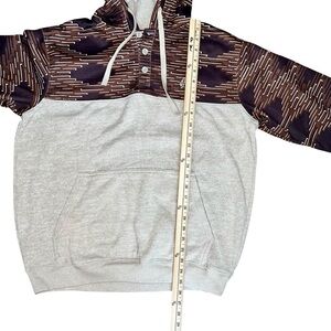 Hooey Hoodie 3/4 button size medium kangaroo pocket lined hood for warmth Aztec print pre owned men women or teen see photos for measurements