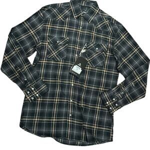Hooey Men's Medium Plaid Flannel Pearl Snap Black & Gray NWT