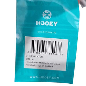 Hooey Women's Military Jacket in Green. Size M / Medium. Features collar, long sleeves with button cuffs, front button closure, chest flap pockets, side patch pockets, drawstring waist, and logo on the back. Style HJ087GR. 100% Cotton. NWT / New with tags.