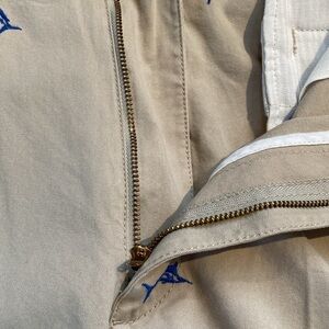 Hook & Tackle Embroidered Marlin Chino Shorts Beige Blue Size 40