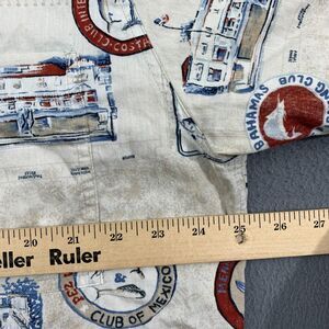 The product is a men's XL fishing-themed button-down shirt by Hook & Tackle, featuring a collared neckline and short sleeves. Made of 100% cotton fabric, the shirt is adorned with a graphic print of the Bahamas Virgin Islands, making it a perfect choice for casual occasions during the summer season. It also includes a pocket and is machine washable, making it both stylish and easy to care for. Ideal for those who love fishing and appreciate worldwide fishing clubs, this shirt is a great addition to any fishing enthusiast's wardrobe.