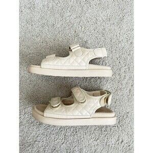 Hook loop Women’s Faux Leather Quilted Flat Sandals Size 36 Euro/ U.S 6