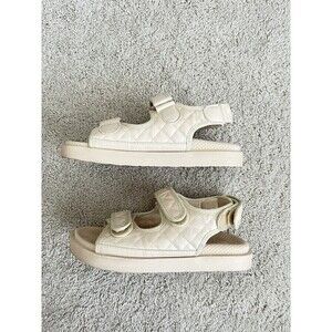 Hook loop Women’s Faux Leather Quilted Flat Sandals Size 36 Euro/ U.S 6