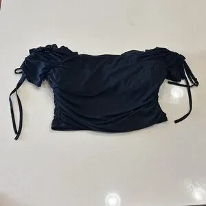 The tie sleeves introduce a playful touch to this versatile top, ideal for amplifying a night-out ensemble or a casual brunch look with friends.