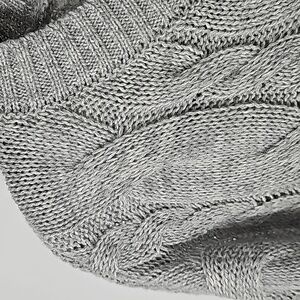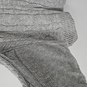 Hooked Up Heather Gray Crew Neck Cable Knit Sweater w Dolman Sleeves