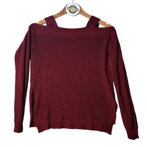 Hooked Up Maroon Cold Shoulder Knit Sweater