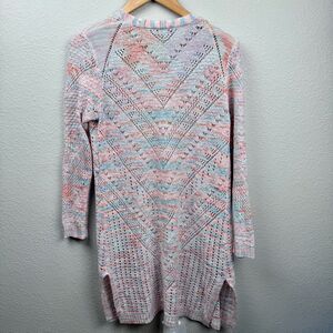 Hooked Up Crochet Open Knit Cardigan Womens Size M Pastel Layering Sweater Festival Boho Fairy