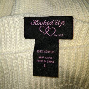 Hooked Up Womens Sweater Size Large White Cold Shoulder Side Split