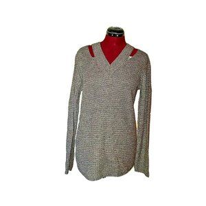 Hooked Up Womens Sweater Size XS Grey Heather Cut Out Caged V Neck