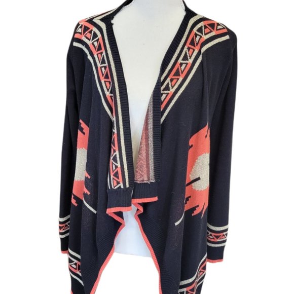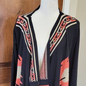 Hooked Up by IO Women' Aztec Design Side Hi Low Open Long Sleeve Cardigan M