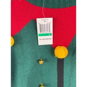 Hooked Up by IOT Ugly Christmas Sweater Dress Women's L Holiday Elf Bells