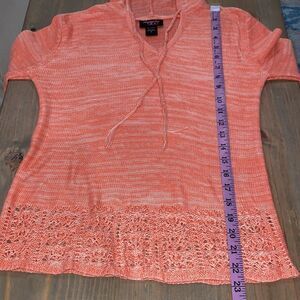 Hooked Up by lOT Peach Mal Open Knit V-Neck Hooded Sweater Size Small