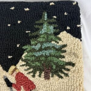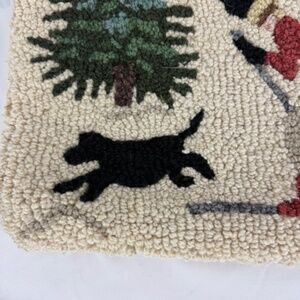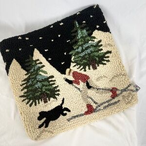 Hooked Wool Pillow Cover Night Skiing with Dog Chandler 4 Corner 18X18 Excellent