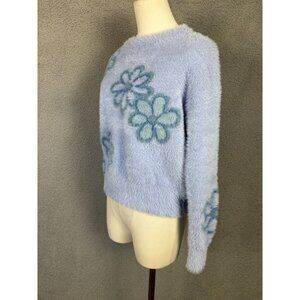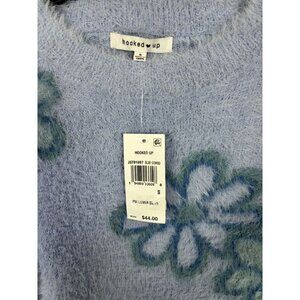 Hooked up by Iot Juniors' Women's Eyelash Floral Fuzzy Sweater Blue Small NWT's
