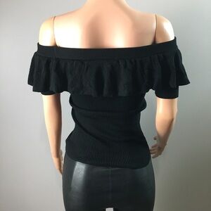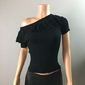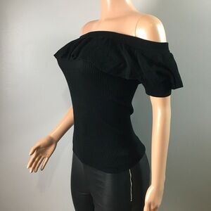 Cute ribbed ruffled cold shoulder top