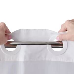 Add a classic look to your bath with a Waffle HOOKLESS shower curtain. The Waffle HOOKLESS Shower Curtain Set offers a 3-in-1 value and adds an unexpected way to refresh your bathroom decor effortlessly in seconds. With no hooks to buy, you will save money while saving time with the convenience of a shower curtain that slides right onto your hanging shower curtain rod, installing in seconds with no need to remove the rod. The patented plastic FLEX-ON rings will never rust and the It's A Snap. liner literally snaps on and off, so you can change it in seconds. The attached PEVA liner is eco-friendly and repels water, making for easy care and maintenance.