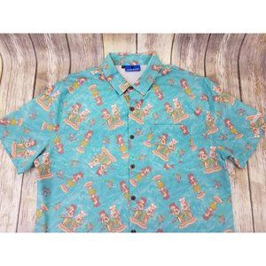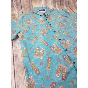 Hooligan Hawaiians Hula Shirt Mens Size XL Blue Aloha Button Up Short Sleeves