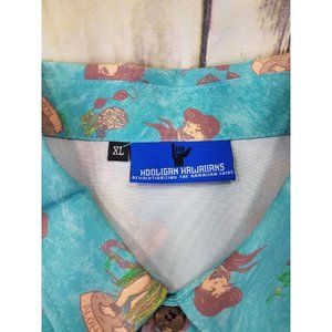 Hooligan Hawaiians Hula Shirt Mens Size XL Blue Aloha Button Up Short Sleeves.