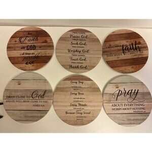 Inspirational faith-based sayings and Bible quotes. Substantial heft, slate-like ceramic with cork backing.